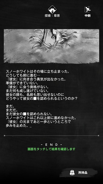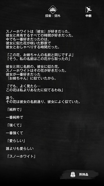 以降は、(お姉ちゃんの頭を取り戻すこと)がスノーホワイトの生きる目的となる。おそらくはストーリー本編でもこの目的は変わっていないと思われる。