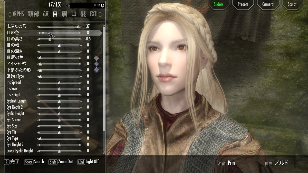 [Skyrim]Fair Skin Complexion をベースにしており、比較的薄顔で肌目の細かいキャラクターになります。